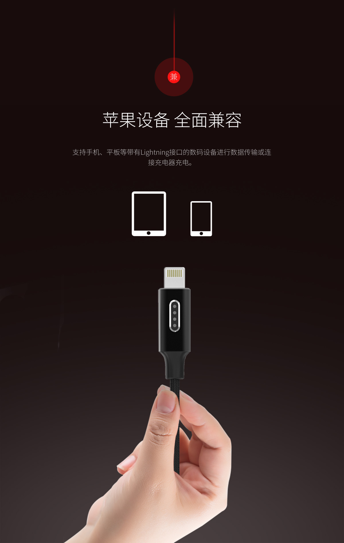 Type-A轉蘋果Lightning接口充電數據線,帶電量顯示