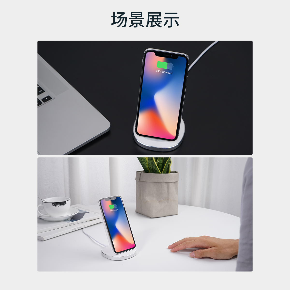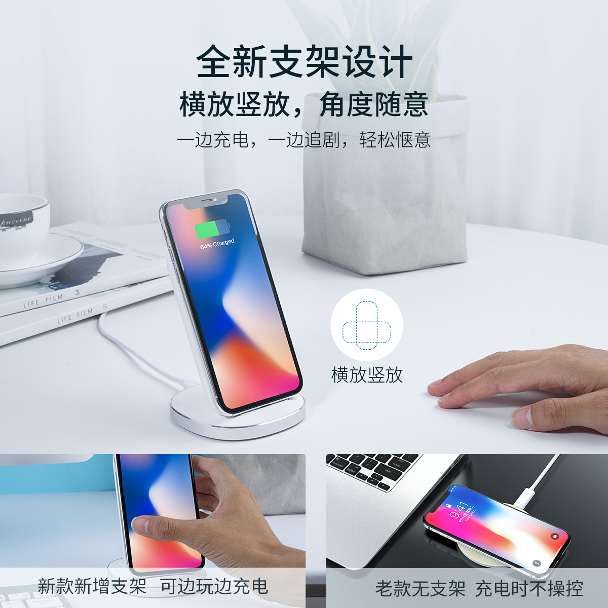 全新支架設(shè)計(jì),支持蘋果7.5W+安卓10W,3種充電模式,升級雙線圈,智能散熱,防滑減震
