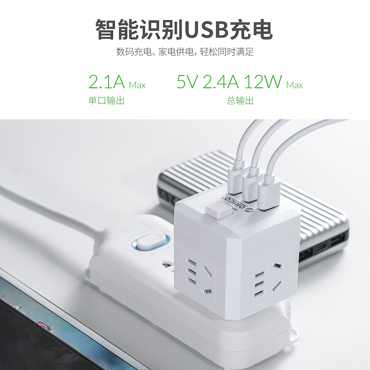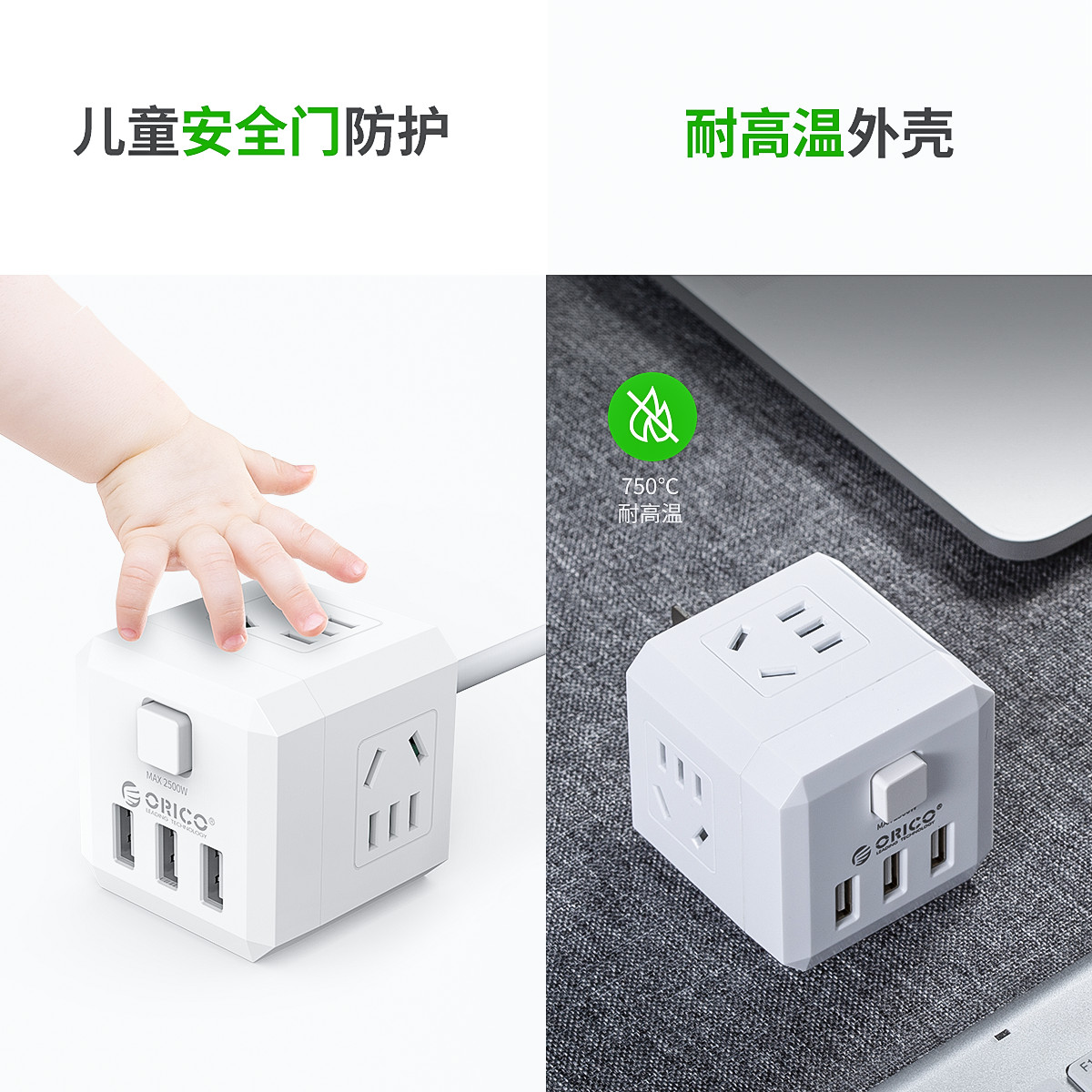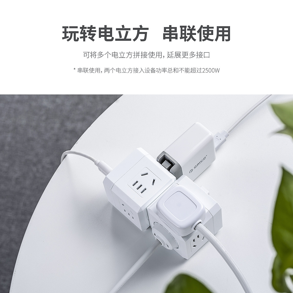 電立方2500W大功率4 AC口+3 USB排插(帶總控開關)
