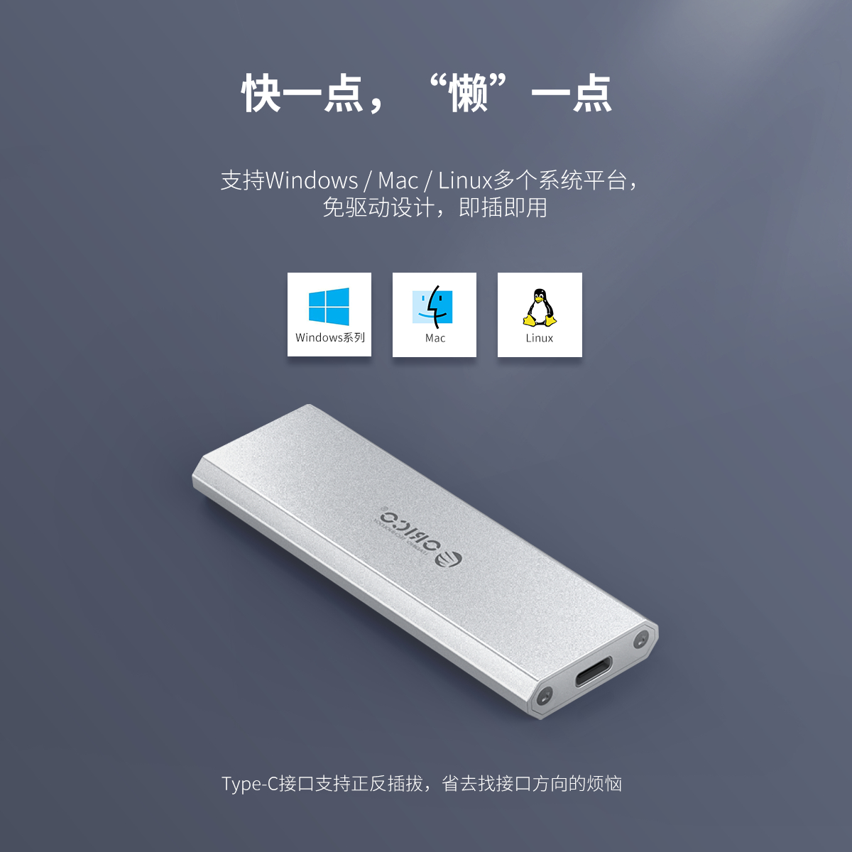 全鋁合金外殼包裹,支持PCI-E 協(xié)議,UASP加速協(xié)議,Type-C接口支持正反插拔,智能休眠,節(jié)能環(huán)保,即插即用,多系統(tǒng)兼容