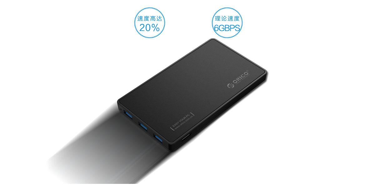 傳統的硬盤盒跟傳統的HUB都是互不關聯的,經過orico的多年設計經驗研究發明,打造出一款全新帶hub功能的硬盤盒,把硬盤盒與HUB巧妙的結合在一起,擁有它等于一次性購買了一個高速硬盤盒和高速hub,節省了空間,更方便您在工作生活中使用。