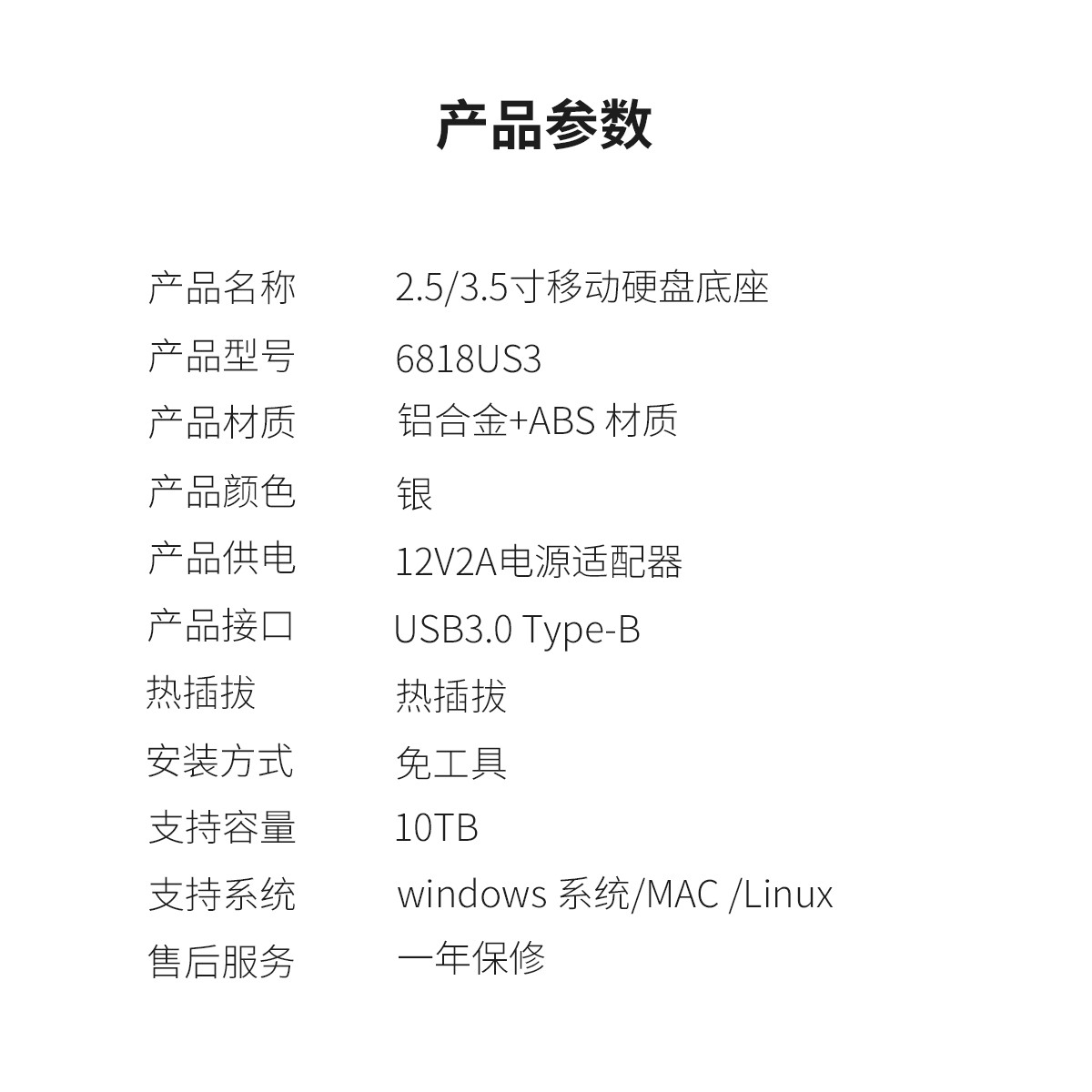 單盤位2.5/3.5英寸鋁合金USB3.0硬盤底座