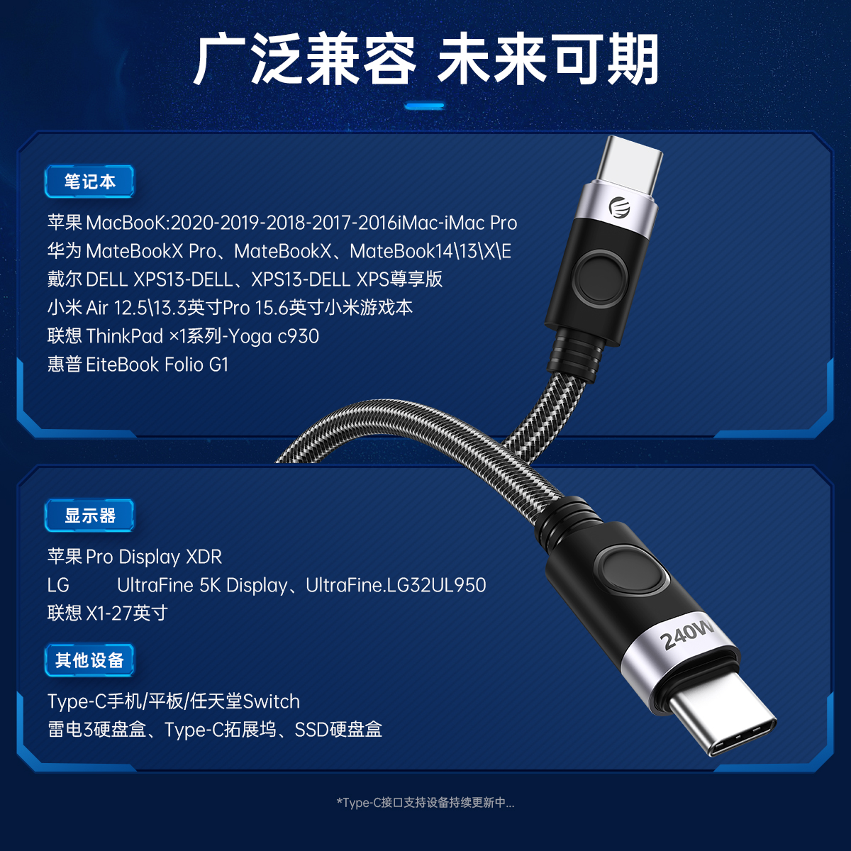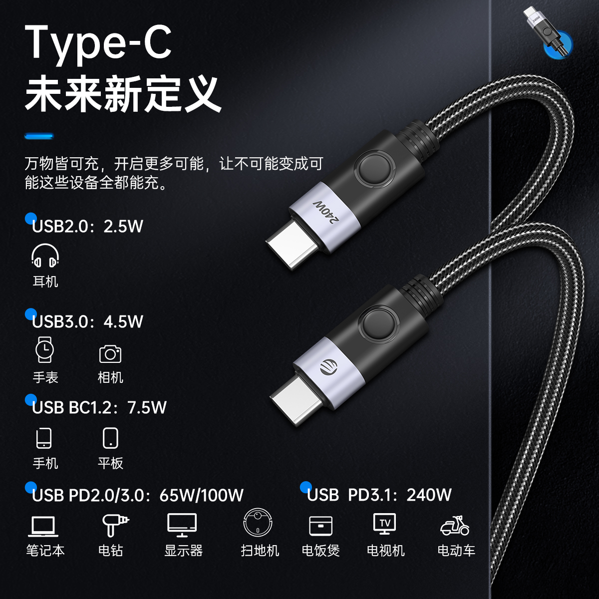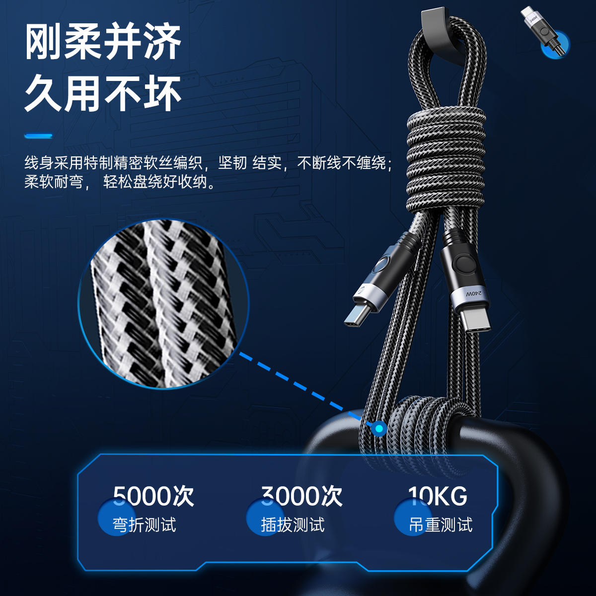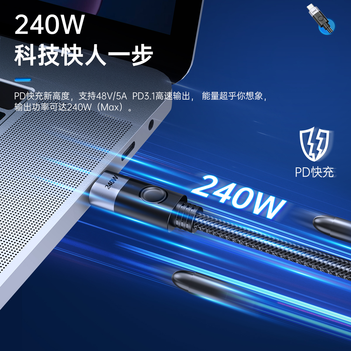USB-C 240W筆記本快充線(側彎頭)