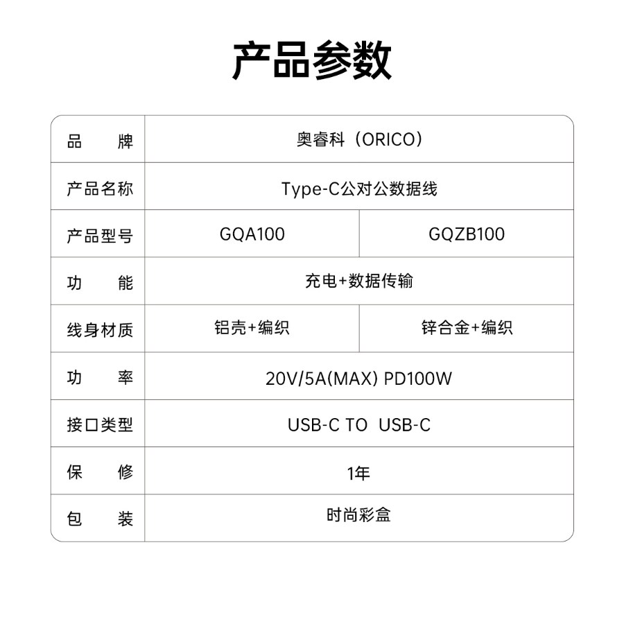 PD100W Type-C快充線