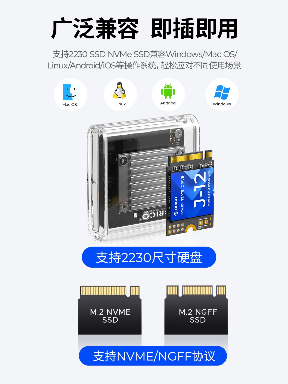 透明系列 2230 M.2 NVME 硬盤盒