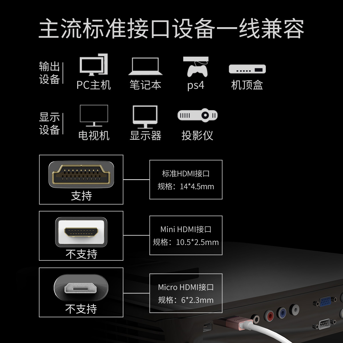 4mm纖細線身,HDMI2.0,4K高清畫質,3D特效畫面,音視頻同傳