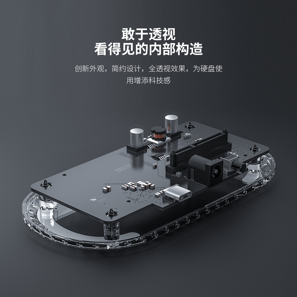 采用PC透明材質打造,全透視效果,兼容不同厚度2.5寸/3.5寸SATA硬盤/SSD固態硬盤