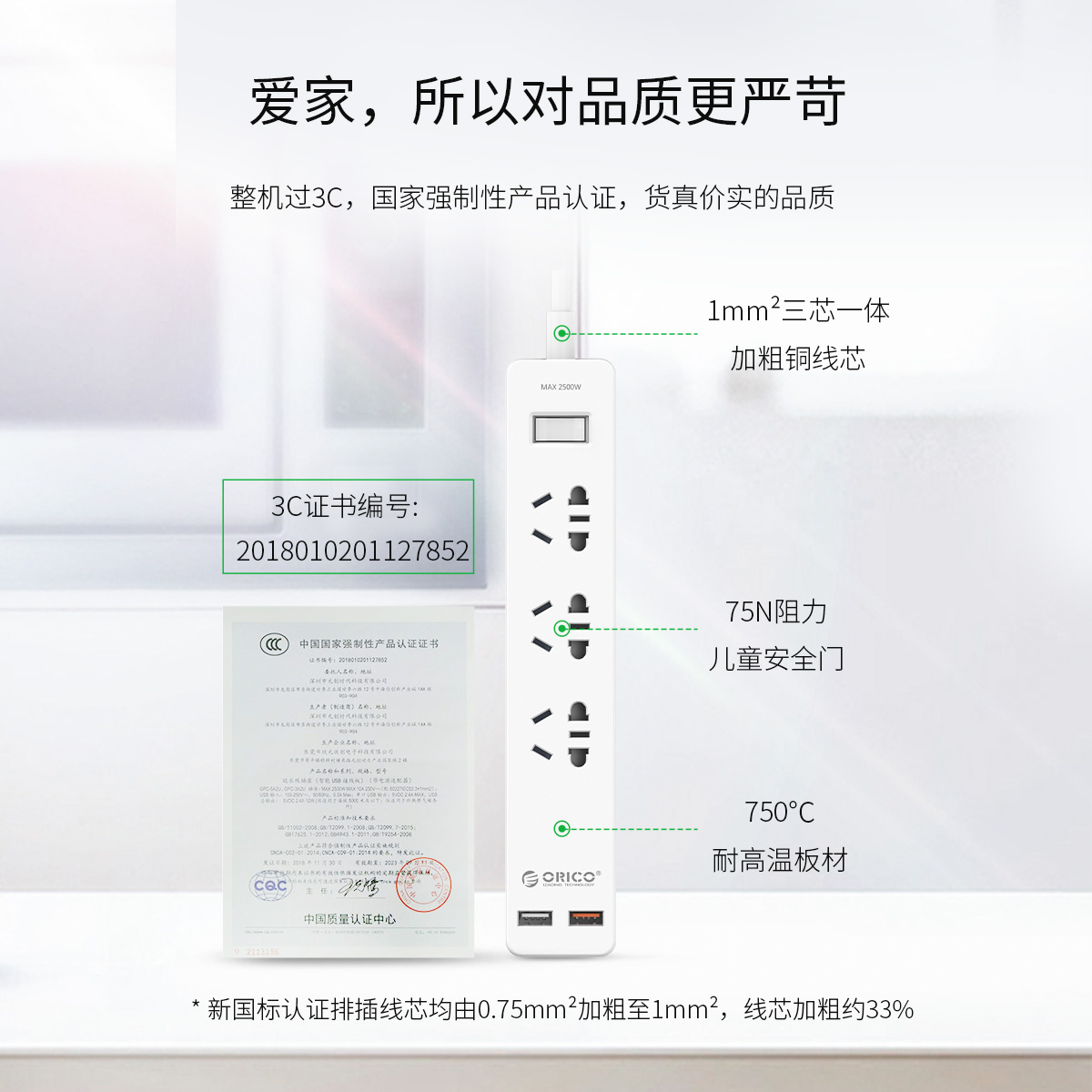 新國標AC口*3, USB口*2,1.5米電源線