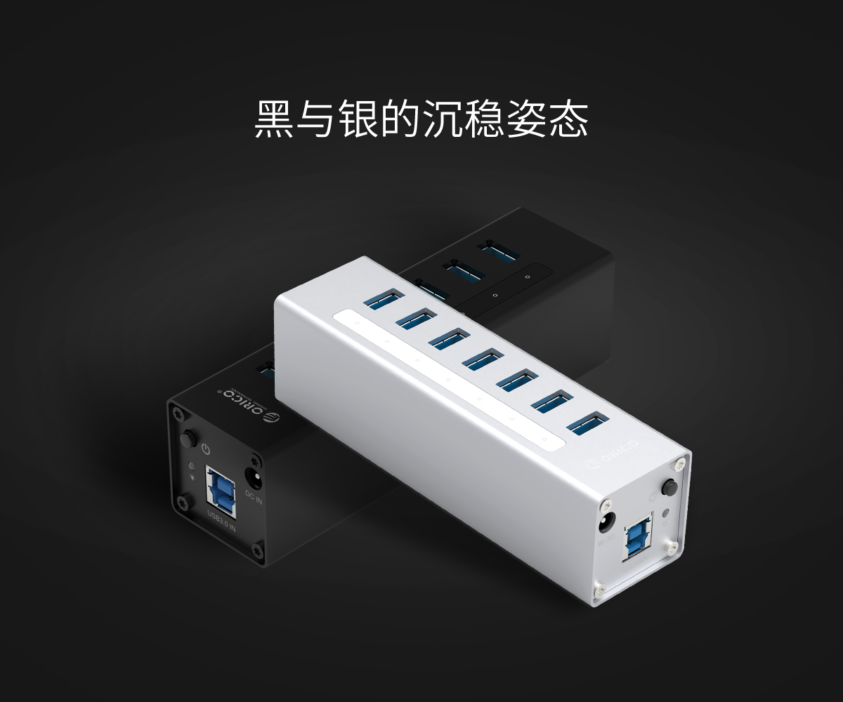 7口鋁合金USB3.0集線器,12V獨立電源供電