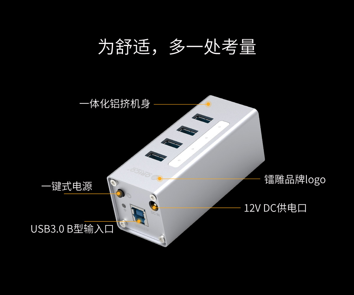 支持BC1.2快充協議,5Gbps高速傳輸,分口指示燈,狀態一目了然