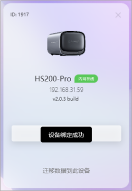 點擊搜索到的NAS設備 ,即會提示“設備綁定成功”。(注意:請確保電腦和NAS設備在同一局域網,才可發現到設備。)